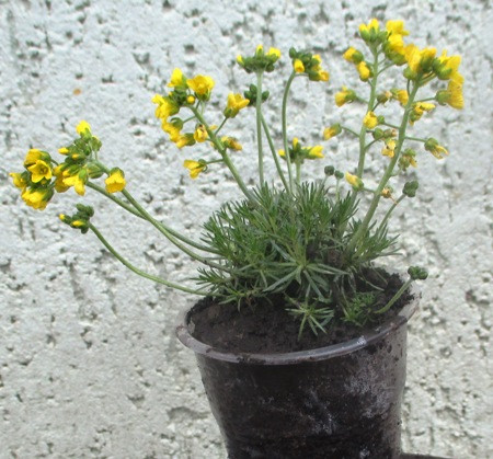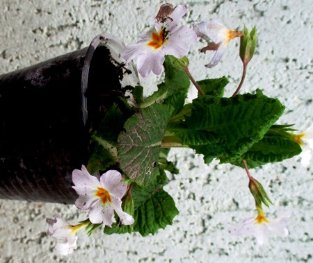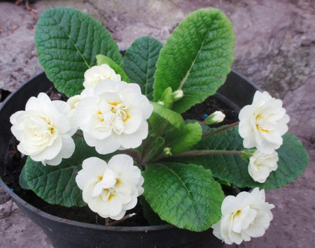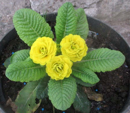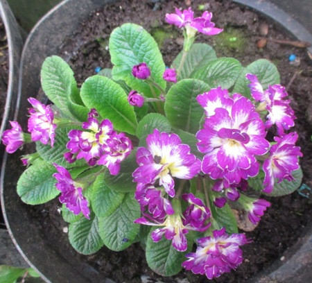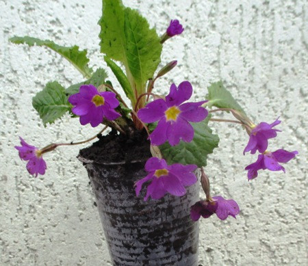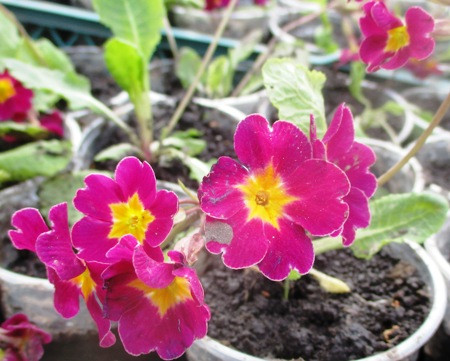 Примула бордова з жовтим центром розсаджена в д5. Чекаємо коли ком обросте корінням.